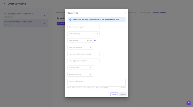 - You can enter several contract events for the same financing object.