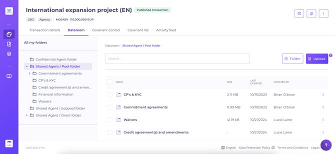 Each dataroom is specific to its own transaction, and access is strictly limited to contacts authorised to that transaction in line with their role.