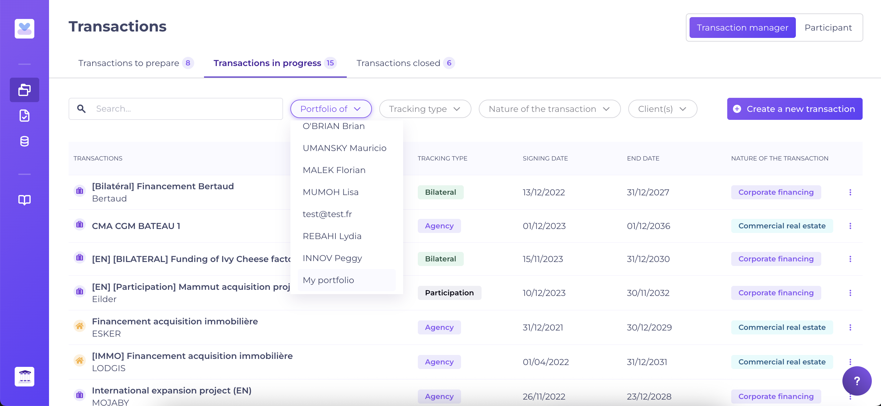 Benefit from greater visibility of your employees' portfolios, thanks to the possibility of adding referent contacts to the transactions being monitored in the Kls Desk.