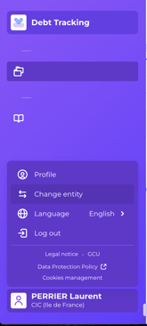 At any time, if the user wishes to consult another transaction they are monitoring, they can switch entities by clicking the “Change entity” function in the side navigation bar.