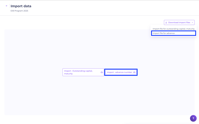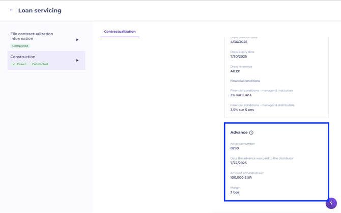 An import file, “advance number,” is also available, enabling you to track information relating to advance requests for this program. Once imported, these items are visible to the manager and distributor in the “Loan servicing” section of the reservation.