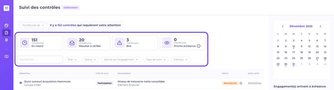 Découvrez la fonctionnalité "Suivi des contrôles" qui vous permet de gérer sur une seule page votre to-do et les contrôles des engagements de l'ensemble de votre portefeuille.