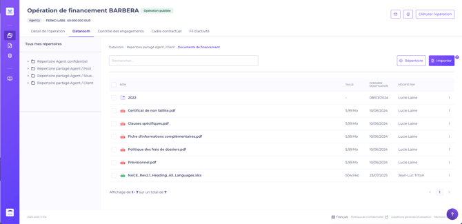 Pour en savoir plus, consultez la page : fonctionnement des dataroom de l'application Debt Tracking du Desk Kls