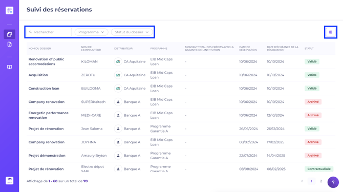 Cette page est accessible depuis votre barre de navigation latérale et permet au gestionnaire de programme d'avoir une vue sur l'ensemble des réservations saisies sur les programmes en gestion.